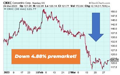 Concentrix Corp. is down 4.88% premarket as company came out with quarterly earnings of $2.56 per share. Overall, it missed the Zacks Consensus Estimate of $2.60 per share. This compares to earnings of $2.85 per share a year ago and an earnings surprise of -1.54%.